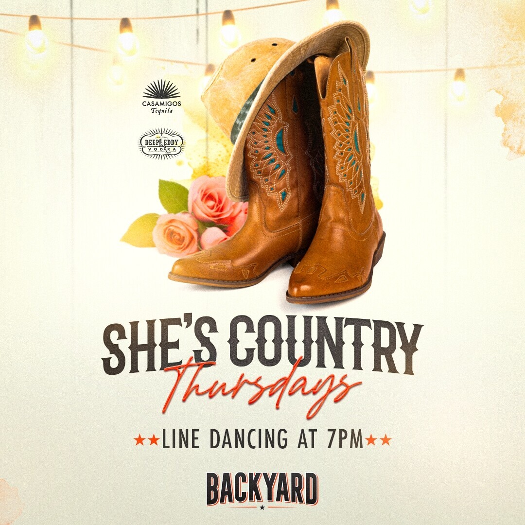 Join us for She's Country Ladies Night every Thursday! Line dancing starts at 7pm! Don't miss out on the honky-tonk fun!